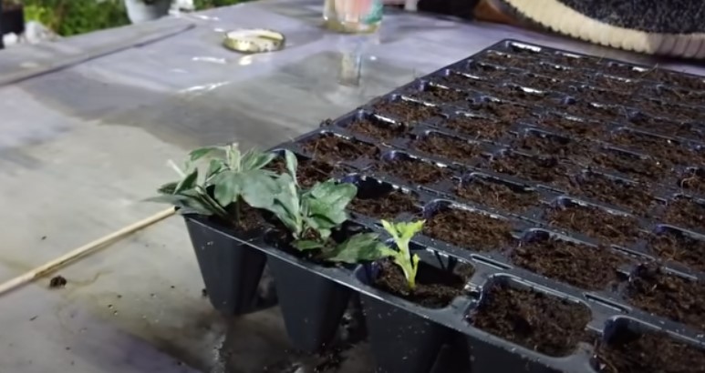 Перед высадкой черенков, кассету с субстратом нужно хорошенько полить обычной водой.